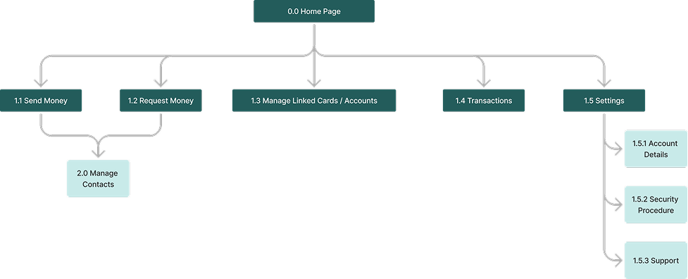 After identifying the user flows, an initial sitemap has been designed.